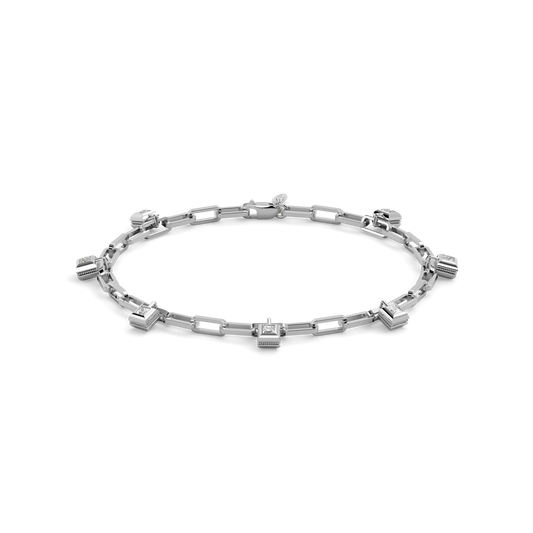 Paperclip Chain Charm Bracelet | Platinum and Diamonds