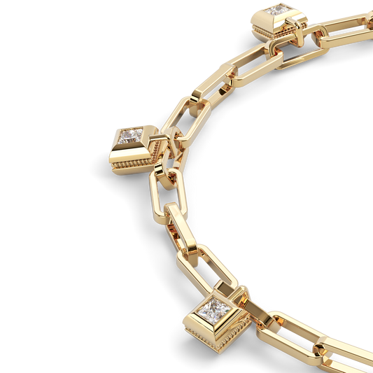 Paperclip Chain Charm Bracelet | 18K Yellow Gold and Diamonds