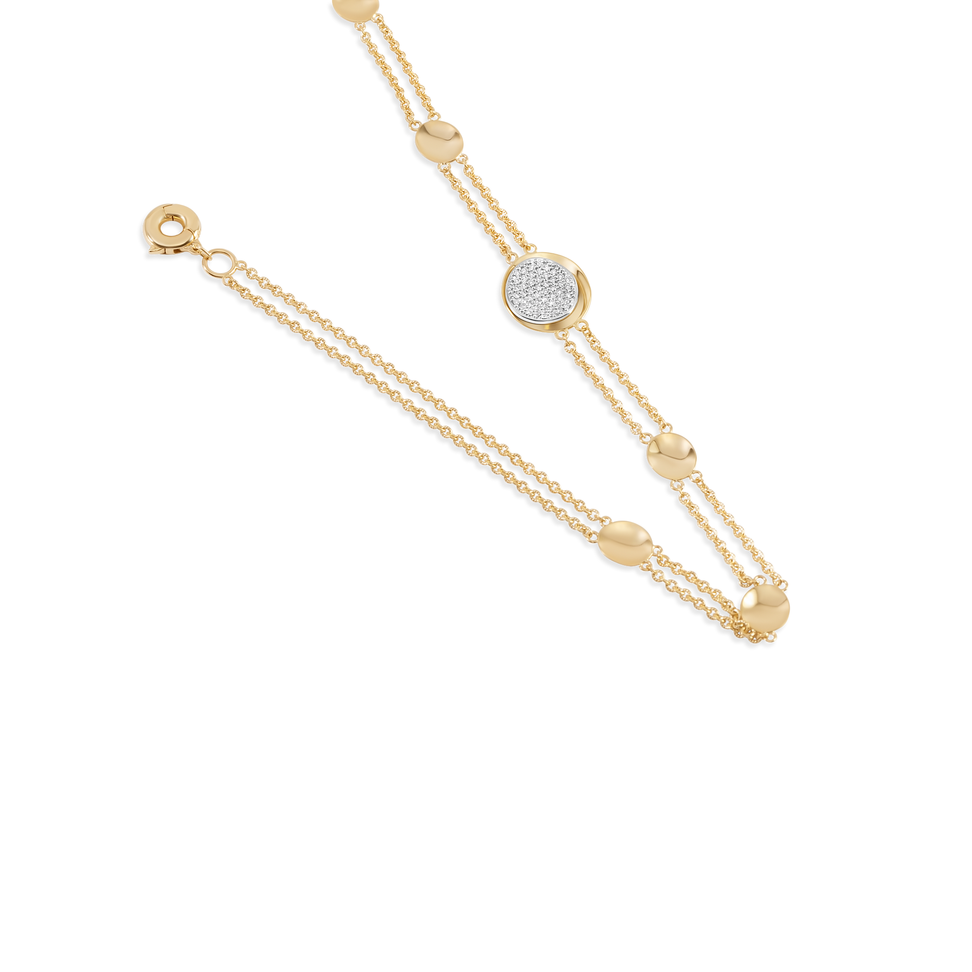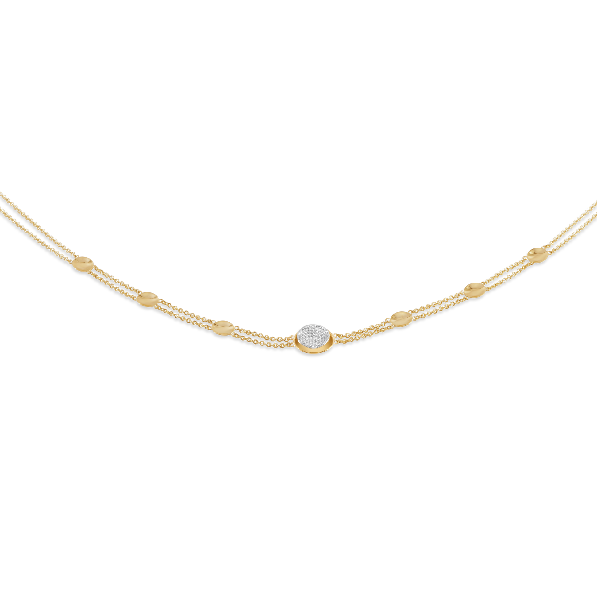Drawing from the intricate beauty of cellular structures, the Cellular Radiance Choker is a bold, modern interpretation of natural design. Floating layers of 18K Yellow Gold and Platinum are illuminated with hand-set diamonds in a rhythmic, science-inspired pattern. With Bixler’s patented adjustable chain, the choker adapts from 13 to 14.5 inches for a close or relaxed fit — offering both comfort and cutting-edge elegance in one timeless piece.