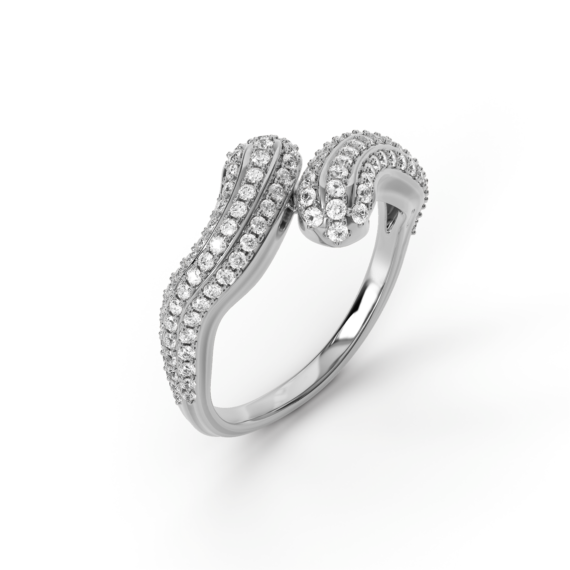 Inspired by stone and wood carving, Bixlers' artisans offer a bounty of diamonds nestled in a carved solid platinum block with each prong chiseled out of the platinum by hand. Available as a necklace, statement earrings, hoop earrings, and ring.