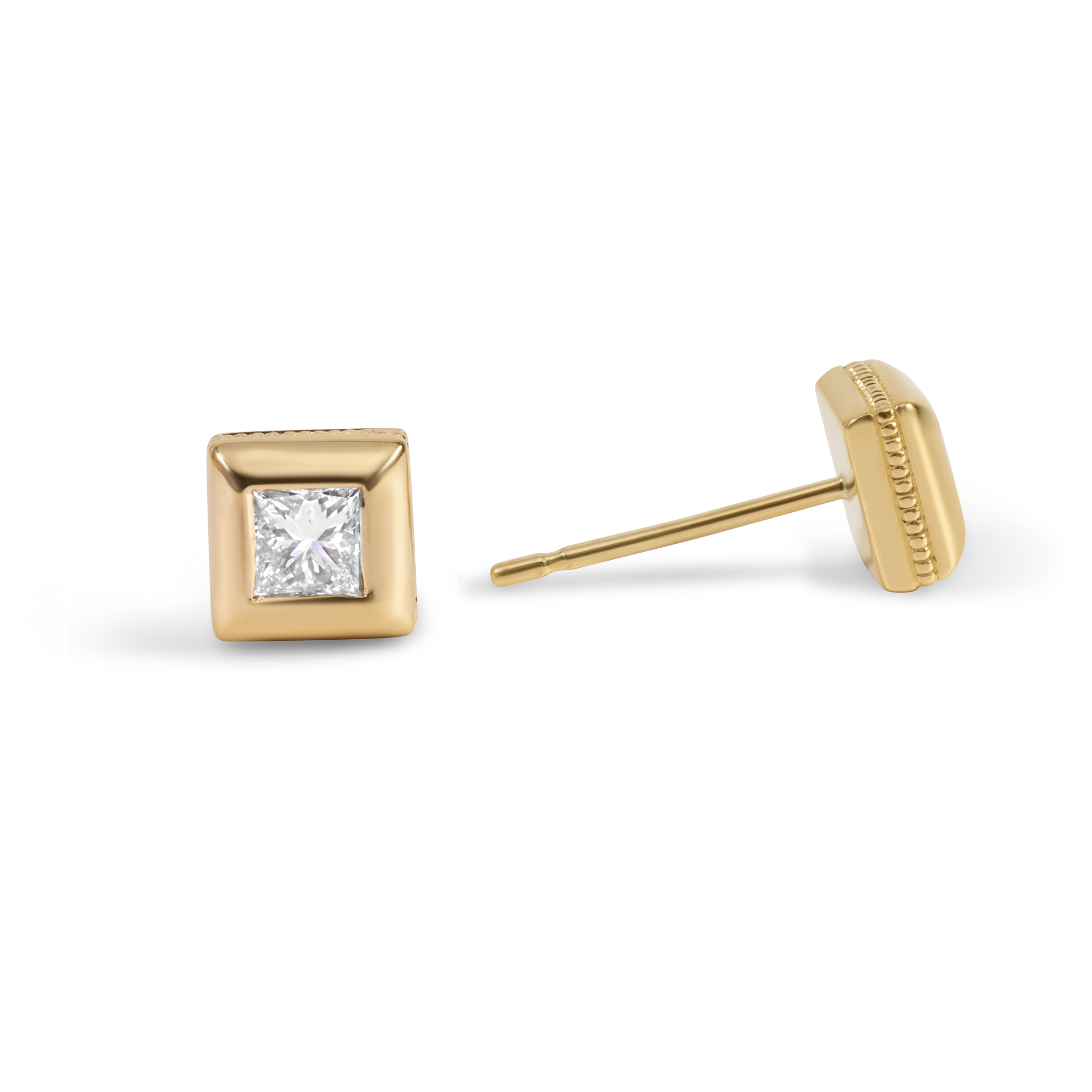 Geometric Stud Earrings | 18K Yellow Gold with Diamonds